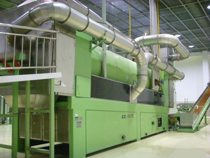 隧道式烘絲機用于煙草制絲生產線的梗絲加工線上,一般配合噴射式梗絲加溫加濕機或隧道式梗絲回潮機使用,實現對梗絲的在線膨脹和...