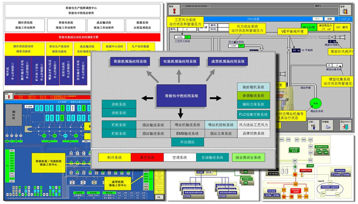 卷接包生產區域信息集成系統采用網絡化的控制技術對卷包生產區域控制子系統和網絡基礎平臺進行重構與優化,采用I/O資源共享技術、網絡及通信集成技術使系統控制和信息傳輸更為穩定、高效運行,采用FLC創新專利技術、PLC智能調度技術實現卷接包生產區域全集成自動化。集生產監視、生產任務、生產換牌、報警及診斷、遠程控制等功能于一體的卷接包區域監控中心可以實現卷接包生產全過程的集中監控與管理。另外還可以實現與MES系統的數據接口及功能接口,規劃及設計以機臺為中心的卷包生產任務流程,實現機臺及輔助系統的生產協同。